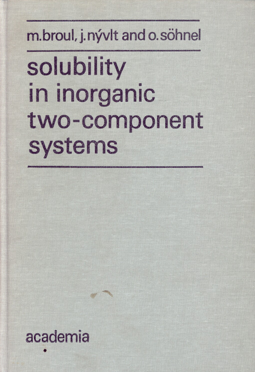 BROUL, Miroslav. Solubility in inorganic two-component systems. Překlad Madeleine ŠTULÍKOVÁ. Druhé vydání (první anglické). Prague: Academia, 1981. 574 stran.