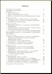 V populárně vědecké práci se autor snaží srozumitelným způsobem zachytit z rozsáhlé problematiky to nejpodstatnější a určující. První část je věnována vzniku filosofie, základním typům materialismu a idealismu arevolučnímu převratu ve filosofii, jímž byl vznik marxismu. Ve druhé části autor na hlavních představitelích obou základních filosofických směrů sleduje jejich vývoj a střetávání.