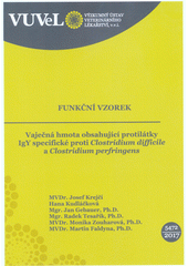 KREJČÍ, Josef. Vaječná hmota obsahující protilátky IgY specifické proti Clostridium difficile a Clostridium perfringens. Brno: Výzkumný ústav veterinárního lékařství, v.v.i., 2017. 13 stran. Funkční vzorek, 5472/2017.