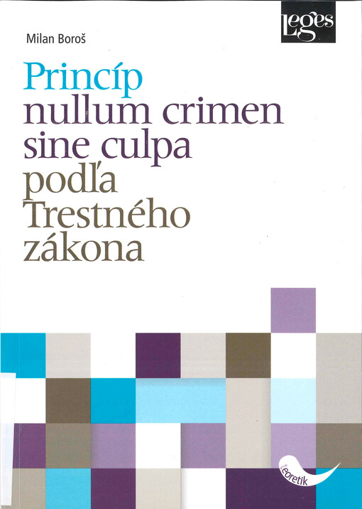 BOROŠ, Milan. Princíp nullum crimen sine culpa podľa Trestného zákona. Vydání první. Praha: Leges, 2019. 249 stran. Teoretik.