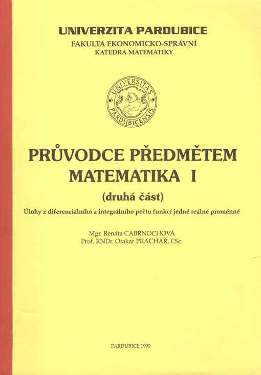 CABRNOCHOVÁ, Renáta. Průvodce předmětem matematika I. Vyd. 1. Pardubice: Univerzita Pardubice, 1999. 199 s.