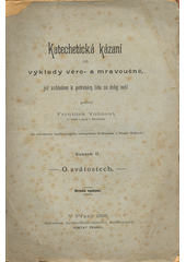 VOHNOUT, František. Katechetická kázaní, čili, Výklady věro- a mravoučné. Druhé vydání. V Praze: Nákladem Cyrillo-Methodějského knihkupectví Gustav Francl, 1897. 290 stran.