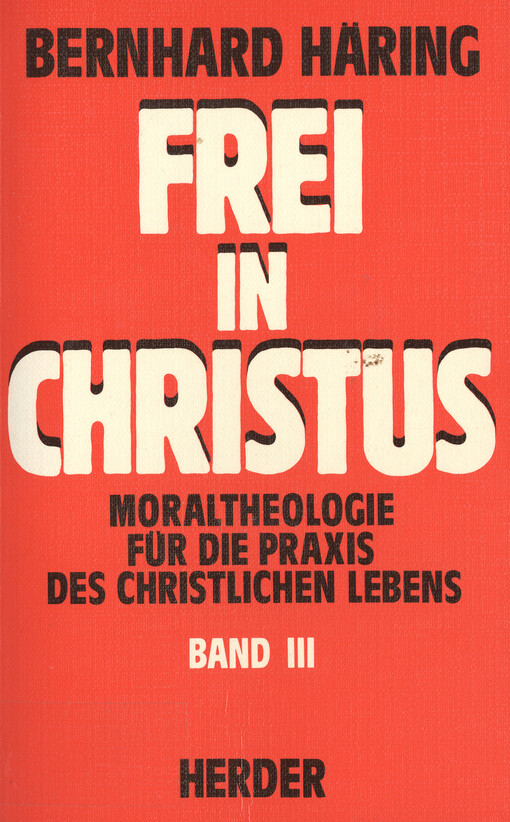 HÄRING, Bernhard. Frei in Christus: Moraltheologie für die Praxis des christlichen Lebens. [4. Aufl.]. Freiburg im Breisgau: Herder, 1989. 484 s.