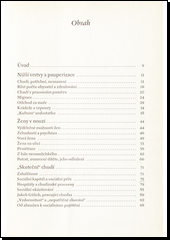 Autor věnuje pozornost lidem žijícím na okraji společnosti a sleduje tento sociální fenomén v epoše dlouhé čtyři sta let. V jednotlivých větších tématických celcích rozebírá skupiny pauperizovaného obyvatelstva - chudé a zchudlé, ženy, které se ocitly v nouzi, žebráky, ale i zloděje, podvodníky a loupeživé bandy. Snaží se dopátrat příčin jejich pádu na dno společenského systému, a to nejen ekonomických. Zvláštní kapitola se zabývá Cikány jako vyčleněné skupině sociálně i kulturně odlišné. V celé knize se autor souběžně věnuje i pokusům o řešení tohoto společenského problému a vývoji sociální péče - od almužen až po organizovaný systém sociální pomoci. Výklad - neobyčejně podrobný - je ilustrován skutečnými lidskými příběhy z těchto společenských skupin. Závěrečná autorova poznámka poukazuje na fakt, že ani naše současnost ještě tento problém zdaleka nevyřešila a že staré předsudky často přetrvávají celá staletí.