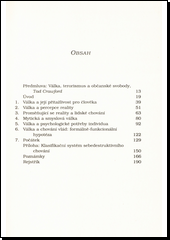 Autor nenabízí jednoduchá řešení a odpovědi, ale přístupně, názorně a srozumitelně přibližuje nejpravděpodobnější příčiny válek, podle nových i starších teorií psychologických, ekonomických i teorie sociálních skupin. V současné době převládají dva základní směry: první biologický a psychologický, druhý naopak chápe válku jako sociální vztah a instituci. Autor se také pokouší objasnit, proč právě válka velmi často inspiruje člověka k vysoké míře loyality, sebeobětování a vůle trpět fyzicky i psychicky, strádat i zemřít. Kniha přináší řadu velmi zajímavých poznatků, s některými závěry či tvrzeními ale nelze souhlasit. V závěru se autor pokouší zřejmě o nemožné, sám to sebekriticky nazývá počátkem cesty. Seznámí nás s některými myšlenkami, jak změnit vzorce lidského jednání a chování, jak zabránit dalším válkám.