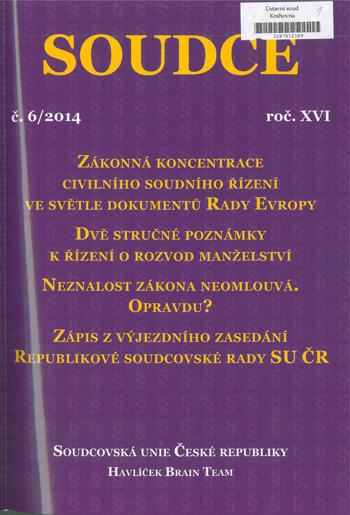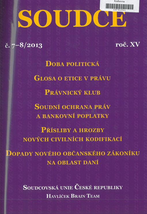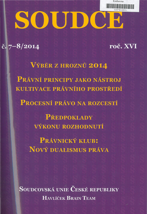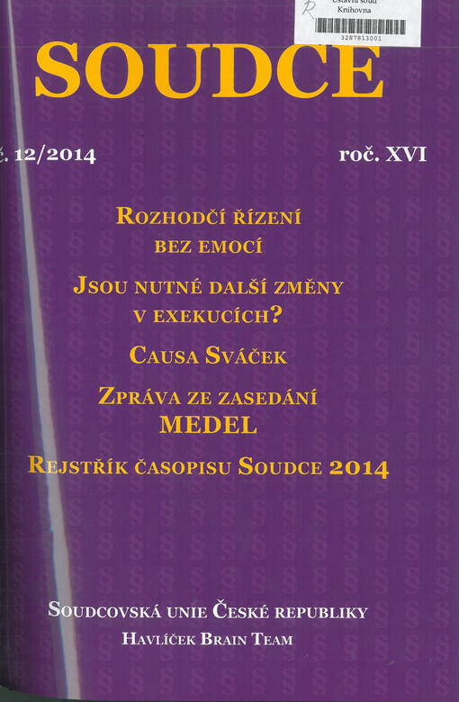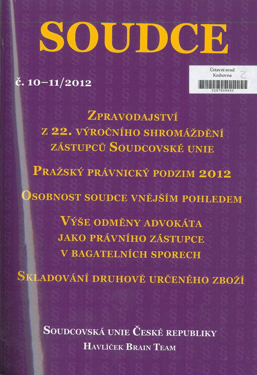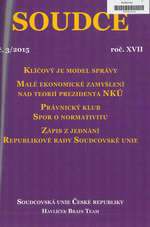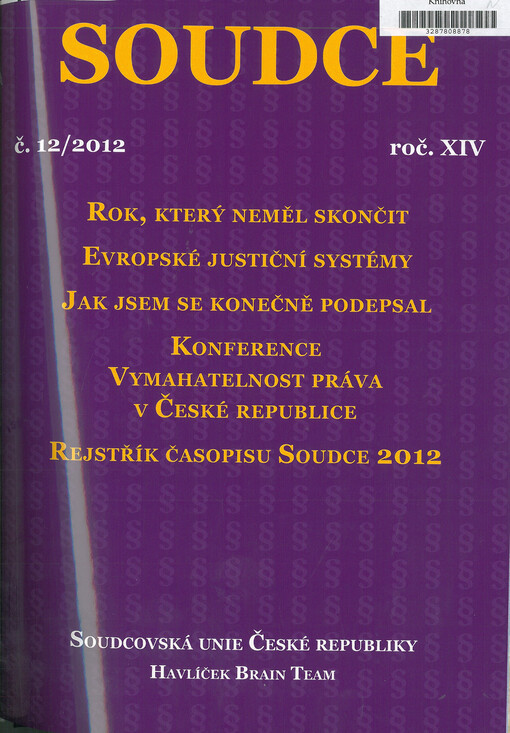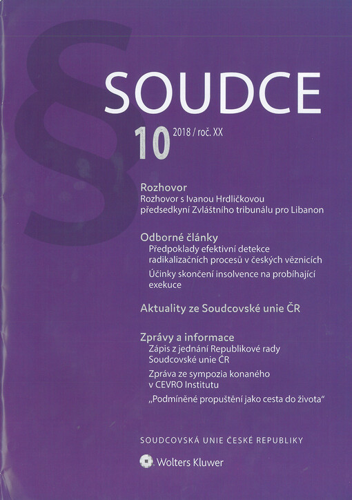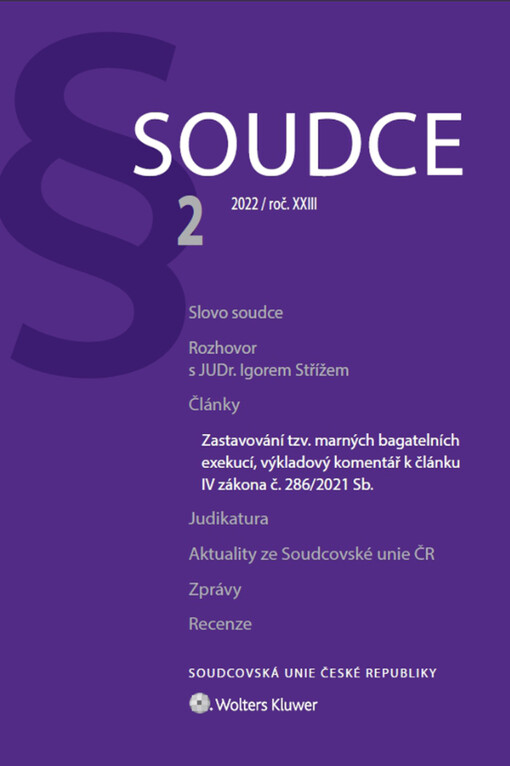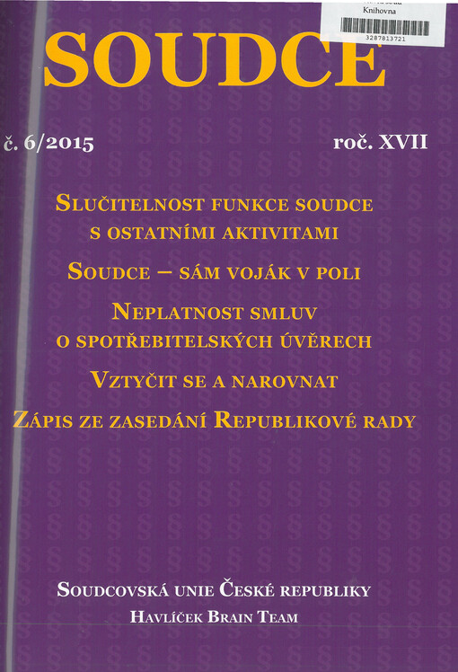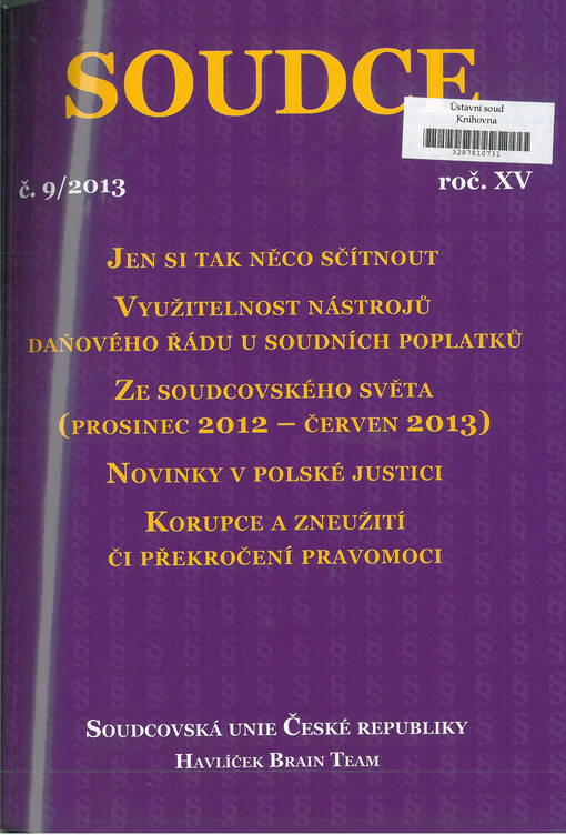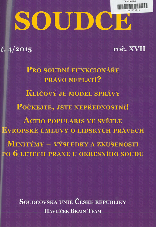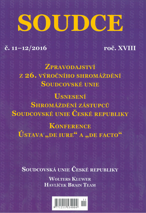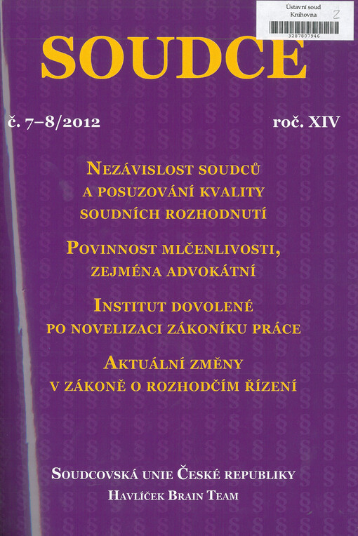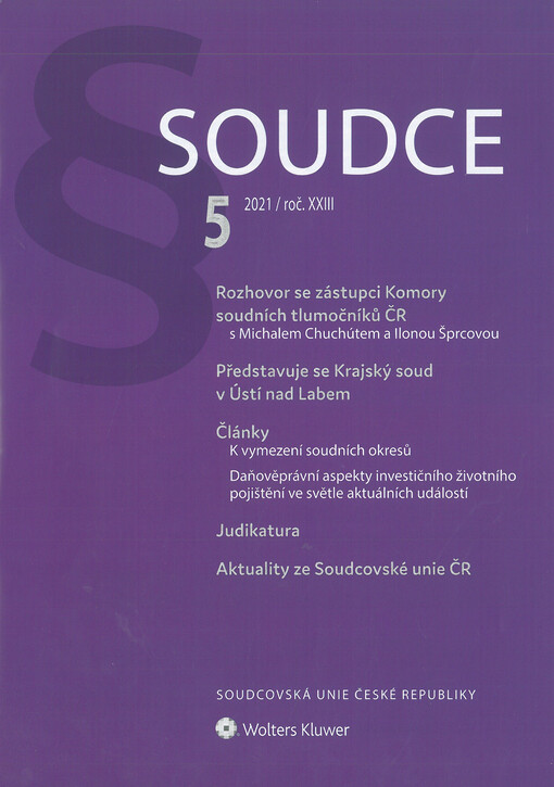 Soudce: časopis Soudcovské unie České republiky. Praha: Soudcovská unie České republiky, 1996-2021.