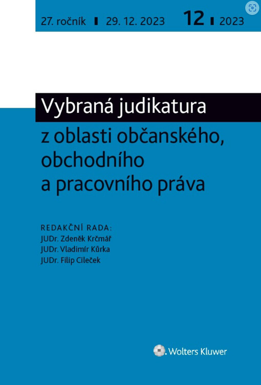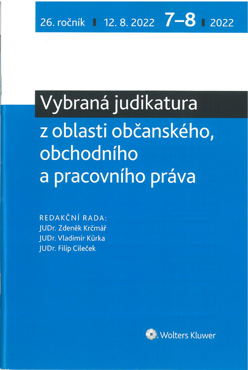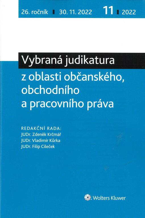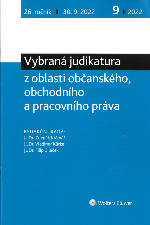 Vybraná judikatura z oblasti občanského, obchodního a pracovního práva. Praha: Wolters Kluwer ČR, a.s., 2022.