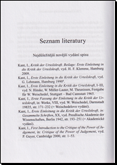 KANT, Immanuel. Úvod ke Kritice soudnosti: první verze. 1. vyd. Praha: OIKOYMENH, 2011, 87 s. Oikúmené. Malá řada, sv. 10. ISBN 978-80-7298-317-9.