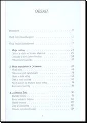 Emilie Schindlerová, která podobně jako její manžel Oskar nasadila svůj život při záchraně více než 1300 Židů před jistou smrtí během nacistické nadvlády, prožila celá desetiletí po válce takřka zapomenuta v Argentině. Až mnohem později než jejímu manželovi se jí po životě ve velké chudobě dostalo finanční podpory a oficiálních poct zvláště z izraelské a německé strany. Vzpomínky statečné ženy, která si zachovala integritu v barbarské době, přinášejí svědectví o hrůzovládě nacistů, ale zároveň bez jakékoliv stylizace poznáváme osobnost Emilie Schindlerové, rázovité hrdinky, o níž se mnozí domnívají, že stála ve stínu svého manžela, což bývá osudem žen slavných mužů až nepříjemně často. Publikace je doplněna četnými, převážně poprvé uveřejněnými dokumenty a fotografiemi a příspěvkem Charlotty Knoblochové, předsedkyně Centrální rady Židů v Německu.