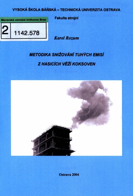 ROZUM, Karel. Metodika snižování tuhých emisí z hasicích věží koksoven. 1. vyd. Ostrava: VŠB - Technická univerzita, 2004. 80 s.