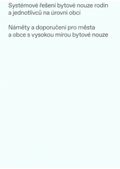 KOCMAN, David. Systémové řešení bytové nouze rodin a jednotlivců na úrovni obcí: náměty a doporučení pro města a obce s vysokou mírou bytové nouze. Vydání první. Praha: Platforma pro sociální bydlení, 2019. 164 stran (některé složené).