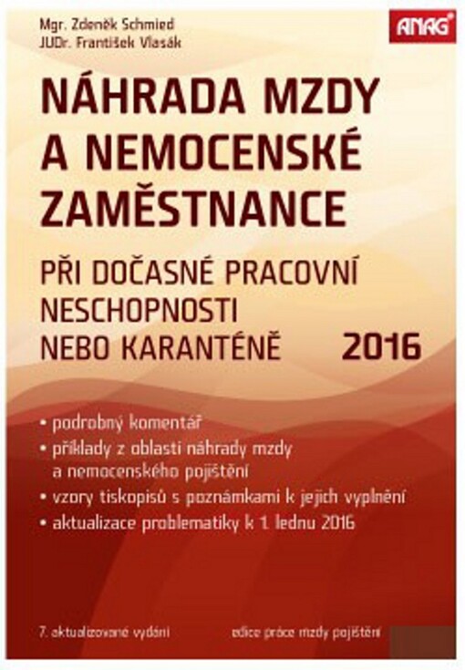 SCHMIED, Zdeněk. Náhrada mzdy a nemocenské zaměstnance: při dočasné pracovní neschopnosti nebo karanténě ... Olomouc: ANAG, 2009-. Práce, mzdy, pojištění.