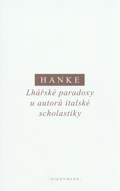 HANKE, Miroslav. Lhářské paradoxy u autorů italské scholastiky. První vydání. Praha: OIKOYMENH, 2015, 203 s. Oikúmené, svazek 183. ISBN 978-80-7298-215-8.
