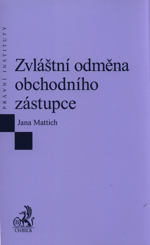 MATTICH, Jana. Zvláštní odměna obchodního zástupce. Vydání první. V Praze: C.H. Beck, 2023. xvii, 134 stran. Právní instituty.