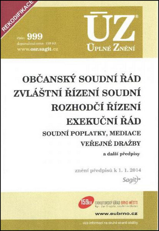 Česko. Občanský soudní řád: Zvláštní řízení soudní ; Rozhodčí řízení ; Soudní poplatky ; Mediace ; Kompetenční spory : redakční uzávěrka ... Ostrava: Sagit, 2004-. ÚZ : úplné znění.