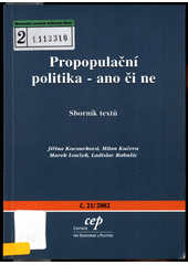 KOCOURKOVÁ, Jiřina. Propopulační politika - ano či ne: sborník textů. Praha: Centrum pro ekonomiku a politiku, 2002, 73 s. Ekonomika, právo, politika, č. 21/2002. ISBN 80-86547-19-1.