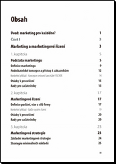Kniha navazuje na úspěšný a několikrát dotiskovaný titul marketing – základy a postupy. Jednoduchou a přehlednou formou seznámí začátečníka se vším důležitým, co by měl o marketingu vědět. Každá z problematik je živě demonstrována na modelových situacích a to převážně z domácího prostředí. Pochopíte tak rychle mechanismy, kterými se domácí trh řídí. Za každou kapitolou následují praktické otázky k zamyšlení i cvičení.