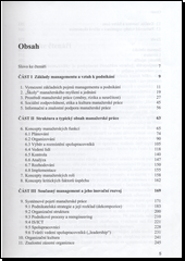 Kniha vymezuje témata, pojmy a úkoly managementu, strukturu a obsah manažerské práce, podrobně se věnuje jednotlivým manažerským funkcím a podává úplný přehled směrů současného managementu a také řadu doporučení, jak uplatňovat nástroje moderního managementu v podmínkách nepřetržitých kritických změn. Je proto vhodná jak pro praxi, tak i pro studenty a účastníky různých manažerských kursů.
