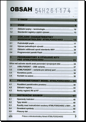 Kniha je věnována popisu a praktickým aplikacím mikrokontroléru AT89LP2052 (AT89LP4052). Mikrokontrolér AT89LP2052 (AT89LP4052) patří do nové řady vysoce výkonných mikrokontrolérů firmy ATMEL, které používají rozšířené jádro 8051. Oproti klasickému jádru 8051 nedochází k vnitřnímu dělení kmitočtu (jádro 8051 pracuje na 1/12 hodinového kmitočtu), takže tyto nové mikrokontroléry dosahují při stejné hodnotě kmitočtu 6 až 12× vyšší rychlost. Z toho také vyplývá, že při stejném výpočetním výkonu mají nižší spotřebu, neboť mohou zpracovat úlohu při nižším synchonizačním kmitočtu. Nejvyšší možný taktovací kmitočet je 20 MHz, čemuž odpovídá maximální výpočetní výkon 20 MIPS. Mikrokontrolér AT89LP2052 (AT89LP4052) je přes tyto "rychlostní" výhody plně binárně kompatibilní s klasickým procesorem 8051. To znamená, že konstruktér může využít znalostí instrukční sady 8051 (nové procesory pracují se stejnými instrukcemi) a také používat stejné vývojové prostředky. Mikrokontrolér AT89LP2052 (AT89LP4052) má nově možnost sériového downloadu programu, což umožňuje nahrávat program do mikrokontroléru přímo v aplikaci (není třeba před každým programováním mikrokontrolér vyjmout z aplikační desky a vložit do programátoru a po naprogramování vrátit zpět do aplikační desky). V knize jsou navíc publikovány dva návody na výrobu vývojových kitů (spojení testovací desky a programátoru). První konstrukce je určena pro sériový port, vyžaduje vnější napájecí zdroj 9 V. Druhá konstrukce je určena pro USB, poskytuje rychlé programování a napájení přímo z počítače (není třeba vnější zdroj). Mezi další přípravky patří: univerzální kit (relé, triak, piezo, tlačítka, PWM detektor), inteligentní maticová klávesnice, rozhraní RS232 s více porty, UART tester ve vstupním i výstupním režimu, jednoduchý SPI přijímač, A/D převodník s operačním zesilovačem, … Jako další vlastnosti mikrokontroléru AT89LP2052 (AT89LP4052) lze uvést: # 2 KB (u AT89LP2052) nebo 4 KB (u AT89LP4052) programové paměti Flash, # 15 programovatelných vstupně/výstupních linek (4 režimy funkce: kvaziobousměrný režim - dle standardu 8051, výstup typu otevřený kolektor, aktivní výstup, pouze vstup), # rozšířený UART (sériový kanál) s jemnějším laděním přenosové rychlosti a detekcí chyby rámce, # SPI kanál, hlídací obvod WDT, detektor podpětí a výpadku napájení, startovací obvod (power-on reset), # analogový komparátor s konfigurovatelným přerušením a filtrací šumu, # dva rozšířené 16bitové čítače/časovače s možností práce jako 8bitové PWM jednotky, # přerušovací systém se 4úrovňovou prioritou přerušení. Firma ATMEL zveřejnila informace o mikrokontroléru AT89LP2052 (AT89LP4052) již v březnu 2005. Výhledově plánuje další typy, které budou mít jako periferie zabudovány například: 10bitový A/D převodník, datovou paměť EEPROM nebo pokročilé čítače/časovače. Naše nakladatelství přináší informace o těchto velmi zajímavých mikrokontrolérem s minimálním zpožděním. Stručný obsah * obsah knihy 1. Úvod 2. Základní charakteristiky mikrokontroléru AT89LP2052/4052 3. Programátory a vývojové kity pro AT89LP2052/4052 4. Programátorský model AT89LP2052/4052 5. Instrukční soubor 6. Assembler ASM51 7. Základy používání paralelního portu P1/P3 8. Složitější úlohy s porty 9. Přerušovací systém a jeho použití 10. Čítač/časovač a jeho použití 11. Sériová rozhraní 12. Analogový komparátor 13. Další rysy AT89LP2052/4052 * obsah doprovodného CD o DEBUG - soubory (a aplikace), pomocí nichž naprogramujete řídicí procesory obou vývojových kitů o DATASHEET - originální dokumentace o FOTO - fotografie hotových přípravků o KITY - ovládací aplikace obou vývojových kitů o PROGRAMY - zdrojové i přeložené formy všech programů realizovaných v knize o OVLADACE - ovladače pro USB port o SPOJE - klišé plošných spojů všech přípravků popsaných v knize