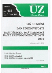Česko. Daň silniční, daň z nemovitostí, daň dědická, daň darovací, daň z převodu nemovitostí 2004: podle stavu k 1. 5. 2004. Ostrava: Sagit, 2004. 64 s. Úplné znění.