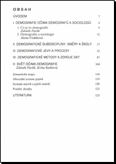 Ediční řada sociologické pojmosloví. Kniha je určena odborné veřejnosti z oblasti společenských věd, lékařských oborů, ochrany a tvorby životního prostředí apod. Obsahuje výklad základních demografických termínů s případnou sociologickou interpretací, vysvětlení konstrukce demografických ukazatelů a popis procesu demografické reprodukce v návaznosti na problémy reprodukčního chování a sociologické pojetí rodiny a rodinného cyklu. Podává též informaci o světovém populačním vývoji včetně nejnovějších demografických dat.