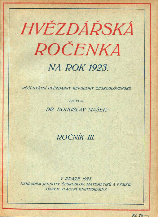 Hvězdářská ročenka ... Praha: Hvězdárna a planetárium hlavního města Prahy :, Akademie věd České republiky, Astronomický ústav, [1921]-.