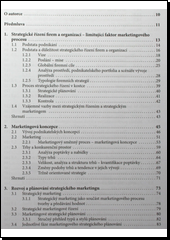 Kniha se komplexně věnuje problematice strategického marketingu, tvorbě marketingových strategií, jejich implementaci a kontrole. Je určena marketingovým praktikům, manažerům, podnikatelům a studentům VŠ. Srozumitelně vysvětluje jednotlivé etapy strategického řídícího procesu, tedy situační analýzu včetně predikce budoucího vývoje, plánování, realizaci a kontrolu, a to jak na úrovni celé firmy, tak na úseku marketingového řízení. Velká část knihy je věnována konkrétním strategiím v rámci produktové, distribuční, cenové a komunikační politiky firmy. Nové vydání se více zaměřuje na úlohu strategického řízení a pozici strategického marketingu, podrobněji se věnuje analytické fázi strategického řízení a zejména uvádí více marketingových strategií, jejich popis a určitou systematizaci. Zcela nově se kniha věnuje implementaci marketingových strategií, možnostem organizace marketingu ve firmě a marketingové kontrole. Srozumitelný výklad je doplněn příklady z praxe reálných firem.