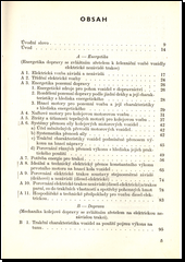 Látka je rozdělena na 5 částí: Energetika dopravy se zvl. zřetelem k železniční vozbě vozidly elektrické nezávislé trakce, Mechanika kolejové dopravy se zvl. zřetelem na elektrickou nezávislou trakci, Výkonaregulacevýkonuprvotních motorů pro elektrickou nezávislou trakci, Generátory pro elektrické přenosy vozidlové a jejich regulace výkonu, Trakční motory pro hnací vozidla elektrické nezávislé trakce. Výklad látky se opírá očetnédiagramy aschemataa je doplněn praktickými příklady. Na konci knihy je seznam použitých vzorců.