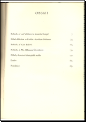 Z Tisíce a jedné noci vybral, přeložil a poznámkami opatřil Felix TAUER. Osm původních litografií, 94 kresby štětcem, předsádku, obálku a vazbu a ostatní výzdobu vytvořil Václav FIALA. 1. vydání.