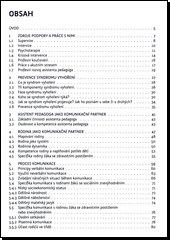 Publikace je určena především asistentům pedagoga, ale užitečné informace v ní najdou všichni ti, kteří hledají jak teoretické poznatky z oblasti mezilidské komunikace s důrazem na školní prostředí, tak i praktické návody a inspiraci pro situace, kdy je potřeba vstupovat do interakcí mezi žákem a jeho rodinou (nebo komunitou v níž žák žije) a školou. Text by měl pomoci čtenáři hledat vnitřní i vnější zdroje podpory a osvětlit některé souvislosti mezi tím, co ve svém životě mohou zažívat za těžkosti, a vykonáváním jejich profese. Detailně se autoři věnují syndromu vyhoření a jeho prevenci. Metodika je vhodná jak pro pracovníky, kteří jsou na počátku své kariéry, tak také pro ty zkušenější, a může sloužit přinejmenším k připomenutí důležitých zásad efektivní komunikace a péče o sebe sama.