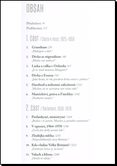 Biografie se zaměřuje na dětství, mládí a manželský život Margaret Thatcherové. Důležitá pozornost je věnována její politické dráze; roku 1959 je zvolena do Dolní sněmovny, v letech 1970-74 působila na postu ministryně školství a roku 1979 se po vítěztví Konzervativní strany stala premiérkou Spojeného království. Autor se rovněž zabývá vývojem britské domácí a zahraniční politiky na přelomu 70. a 80. let minulého století. Kniha končí rokem 1982, kdy Británie zvítězila ve válce o Falklandy.