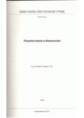 FREIBERG, František. Finanční teorie a financování. 1. vyd. Praha: Vydavatelství ČVUT, 1994. 214 s.