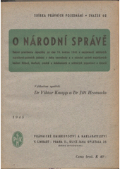 KNAPP, Viktor. O národní správě: dekret presidenta republiky ze dne 19. května 1945 o neplatnosti některých majetkově-právních jednání z doby nesvobody a o národní správě majetkových hodnot Němců, Maďarů, zrádců a kolaborantů a některých organisací a ústavů. 1. vyd. V Praze: Právnické knihkupectví a nakladatelství V. Linhart, 1945. 96 s. Sbírka právních pojednání, sv. 62.