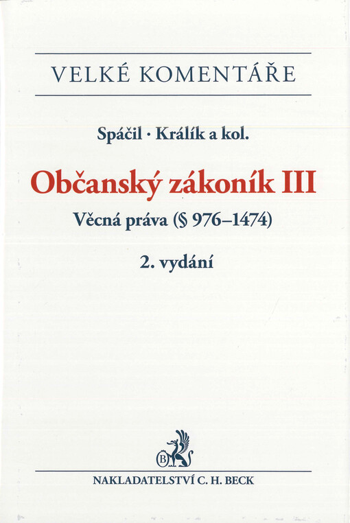 LAVICKÝ, Petr. Občanský zákoník: komentář. 2. vydání. V Praze: C.H. Beck, 2020-. ^^^svazků. Velké komentáře.