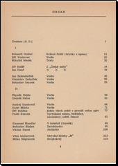 Soubor básní, próz a studií, spojených společnou estetikou, myšlenkovým pozadím nebo tématem a představujících souborný projev tvůrčího úsilí těchto autorů: Bohuslav Blažek, Bohumil Doležal, Jan Hanč, Václav Havel, Zbyněk Hejda, Ladislav Hejdánek, Zdeněk Helus, Bohumil Hrabal, Jiří Kolář, Jiří Kuběna, Věra Linhartová, Jan Lopatka, Emanuel Mandler, Mikuláš Medek, Karel Milota, Milan Nápravník, Jiří Němec, Rio Preisner, Bohuslav Reynek, Andrej Stankovič, Pavel Švanda, Jiří Voskovec, Jan Zahradníček, Stanislav Zedníček - Gaston Bachelard, Hans Georg Gadamer.