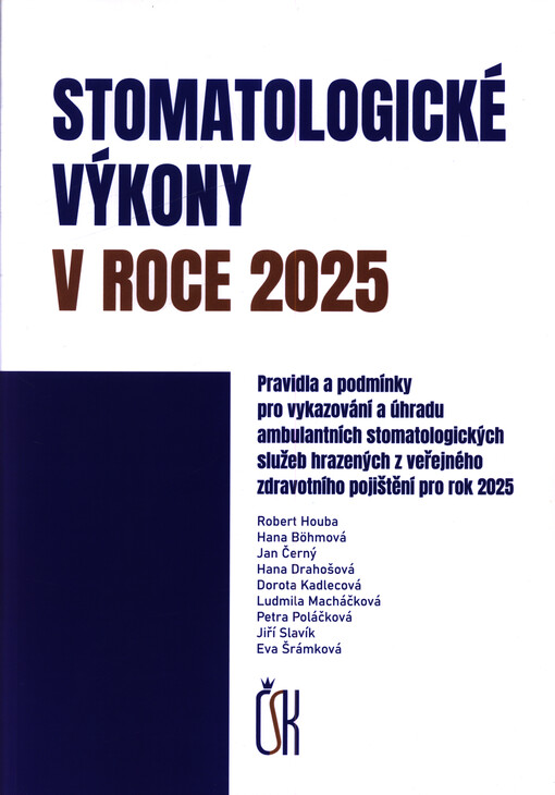 Stomatologické výkony v roce ..: pravidla a podmínky pro vykazování a úhradu ambulantních stomatologických služeb hrazených z veřejného zdravotního pojištění pro rok ... Praha: Česká stomatologická komora, 2021-.