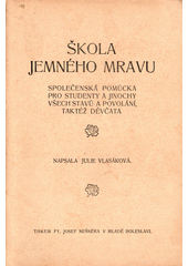 VLASÁKOVÁ, Julie. Škola jemného mravu: společenská pomůcka pro studenty a jinochy všech stavů a povolání, taktéž děvčata. V Mladé Boleslavi: Josef L. Švíkal, [1911]. 55 stran.