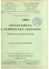 KAMENÍČEK, Ladislav. Prolegomena k zemědělské filosofii =: Introduction to agricultural philosophy. V Brně: A. Píša [distributor], 1948. 52 s. Sborník Vysoké školy zemědělské v Brně, C 41.