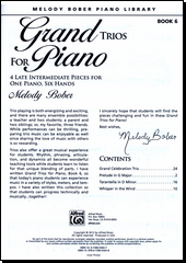 BOBER, Melody. Grand trios for piano: 4 late intermediate pieces for one piano, six hands. Van Nuys, CA: Alfred Music Publishing Co., Inc., [2012]. 35 stran. Melody Bober piano library.