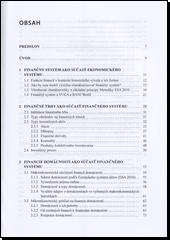 Publikácia ,,Finančný systém,, predstavuje dôkladne spracovanú učebnicu zameranú na poskytovanie základných vedomostí o fungovaní finančného systému v rámci ekonomického prostredia. Autori sa zaoberajú analýzou vzťahov vo finančnom systéme, cieľom ktorého je umožniť čitateľom hlbšie porozumieť zložitému prostrediu financií ako neoddeliteľnej súčasti finančnej vedy. Kolektív autorov si kladie za úlohu prezentovať túto náročnú problematiku jasne a zrozumiteľne nielen pre študentov ekonomických odborov, ale aj pre záujemcov z rôznych študijných programov a odborníkov z praxe, ktorí sa chcú oboznámiť s kľúčovými aspektmi finančných systémov.