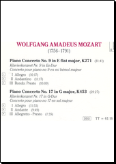 Concerto for piano & orchestra no. 9 in E flat major, K 271 Concerto for piano & orchestra no. 17 in G major, K 453