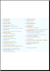 Autor: Franz Schubert, Pietro Mascagni, Georg Friedrich Händel, Charles Gounod, Georg Friedrich Händel, Wolfgang Amadeus Mozart, Robert Jan Nepomuk Führer, Wolfgang Amadeus Mozart, Johann Sebastian Bach, Antonín Dvořák, Giuseppe Giordani, César Franck