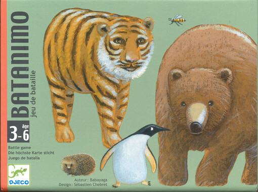 Kdo z koho: přebíjená pro nejmenší se zvířátky = Batanimo : jeu de bataille [objekt]. Francie: Djeco, [2020?]. 1 kartonová krabice s příslušenstvím.