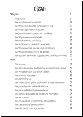 Kniha humoristicky laděných příběhů od české autorky žijící na Bali. Autorka vypráví o svérázné mentalitě starousedlíků, i o úplně odlišném životním stylu. Vtipné příběhy z Bali byly nejprve napsány pro autorčin facebookový profil. Pro velký čtenářský úspěch se ale autorka rozhodla své příspěvky vydat knižně.