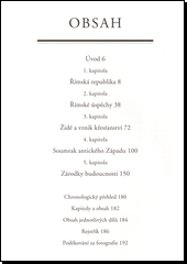 Konec vlády Etrusků a vznik římské republiky. Přerod republiky v císařství, vývoj a rozmach římského imperia. Vznik křesťanství a osudy prvotní církve. Pohyb a útoky barbarských kmenů a rozpad římské říše. Pronikání křesťanství do antického světa na východě i na západě Evropy. Fotografie památek a uměleckých předmětů dokumentují vyspělou římskou civilizaci.