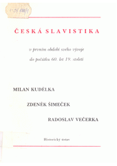 KUDĚLKA, Milan. Česká slavistika v prvním období svého vývoje do počátku 60. let 19. století. 1. vyd. Praha: Historický ústav, 1995. 393 s. Práce Historického ústavu ČAV =, Opera Instituti historici Pragae. Řada A, Monographia, sv. 12,.