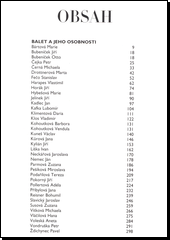 Životopisné údaje, popis dosavadní kariéry a soupis rolí tvoří páteř informací k jednotlivým tanečnicím a tanečníkům. Knihu doplňují ještě čtyři medailony výtvarných umělců, kteří se nechávají světem baletu inspirovat nebo ho svým uměním dotvářejí.