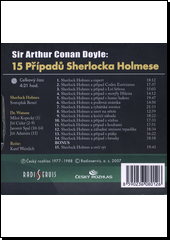 DOYLE, Arthur Conan, Rudolf ČECHURA, Miroslav ŠLAPAL, Petr SKOUMAL, et al. 15 Případů Sherlocka Holmese [zvukový záznam]. Praha: Radioservis, c2007. 1 zvuková deska (261:00). Zlatý fond Českého rozhlasu.