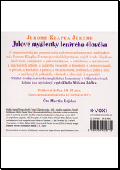 JEROME, Jerome K. Jalové myšlenky lenivého člověka: kniha pro sváteční zahálku [zvukový záznam]. Překlad Milan ŽÁČEK. Praha: Voxi, [2020]. 1 audiodisk (5 hod., 10 min.).