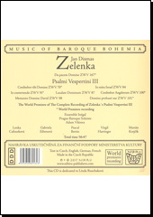 ZELENKA, Jan Dismas. Da pacem Domine ZWV 167: Psalmi Vespertini III [zvukový záznam]. [Praha]: Nibiru, [2017]. 1 CD audio (56:47). Music of baroque Bohemia.